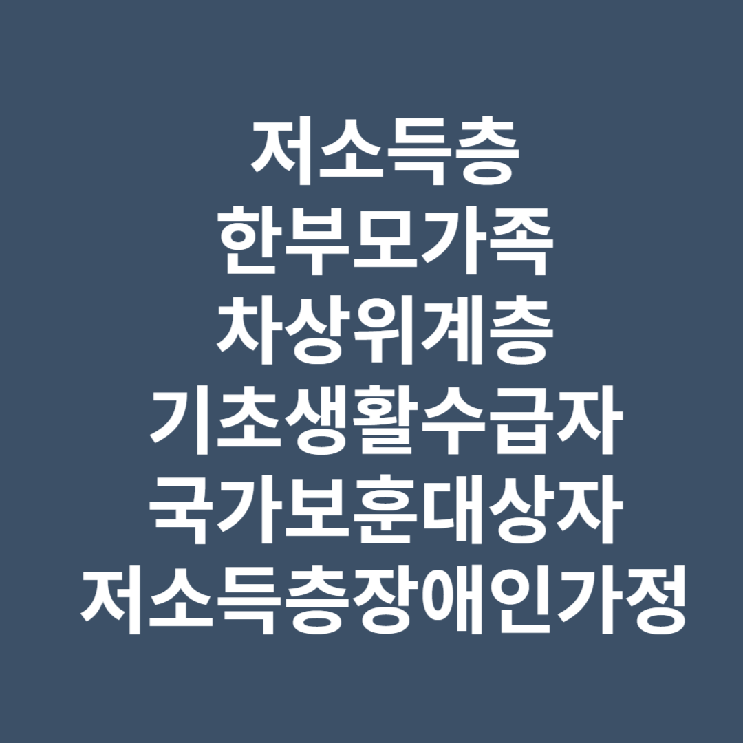 지원대상자는 국가보훈대상이나 기초생활수급자, 차상위 계층, 65세 이상 노인, 한부모가족, 저소득층 등입니다.