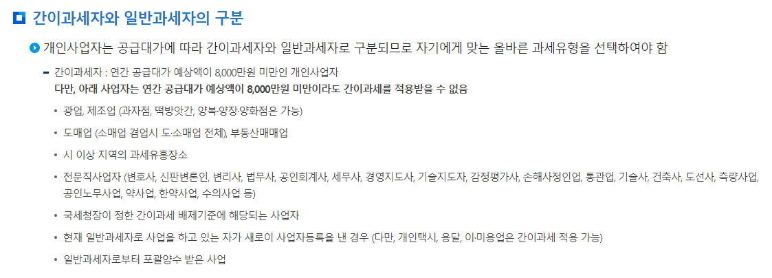 -연간공급가액이 8천만원 미만인 개인사업자가 신청가능(예외업종 있음)